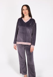 Ensemble pyjama col V | Collection Velvet MLC - Gris / M