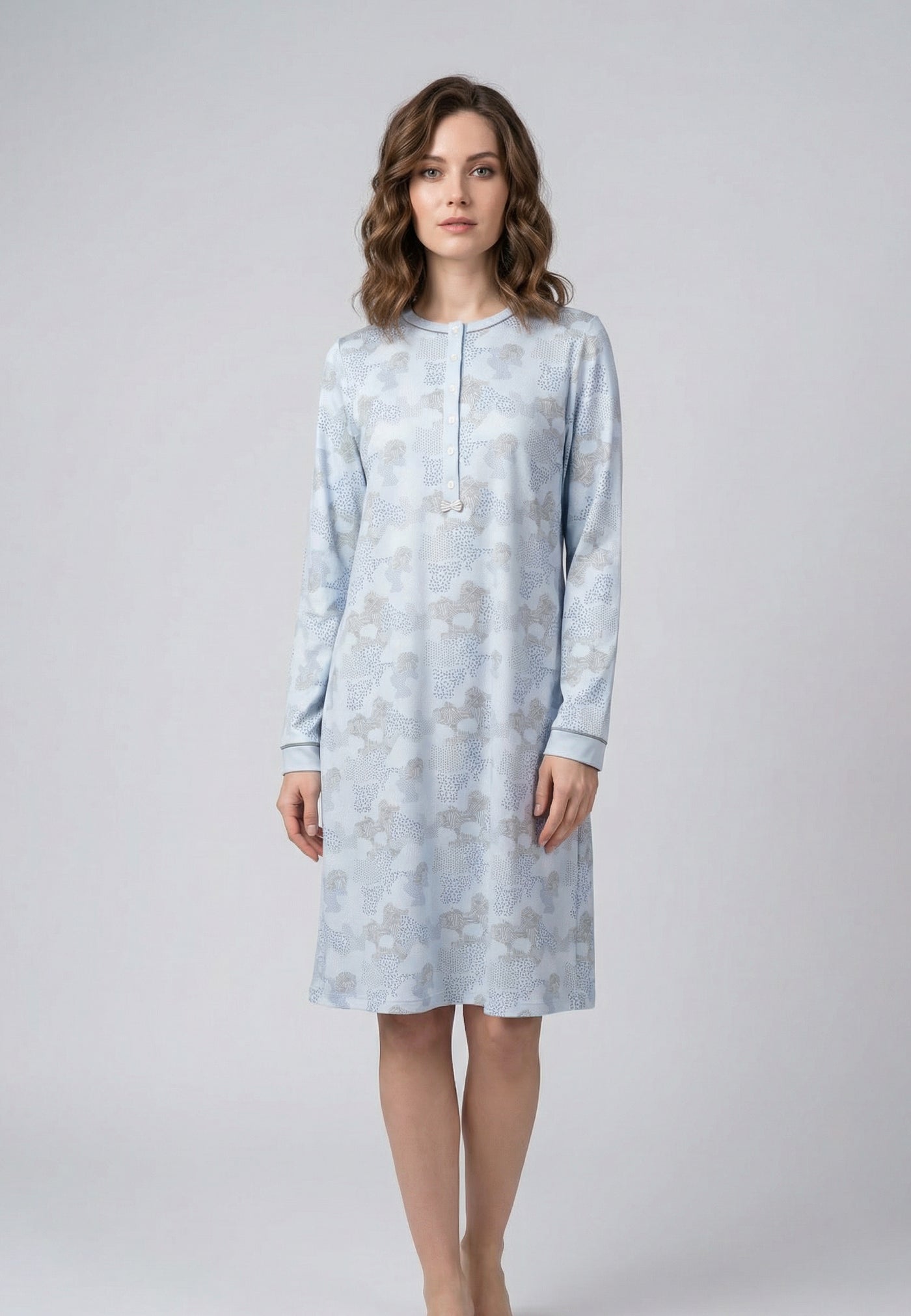 Pyjama Robe Manches Longues Bleu Imprimé