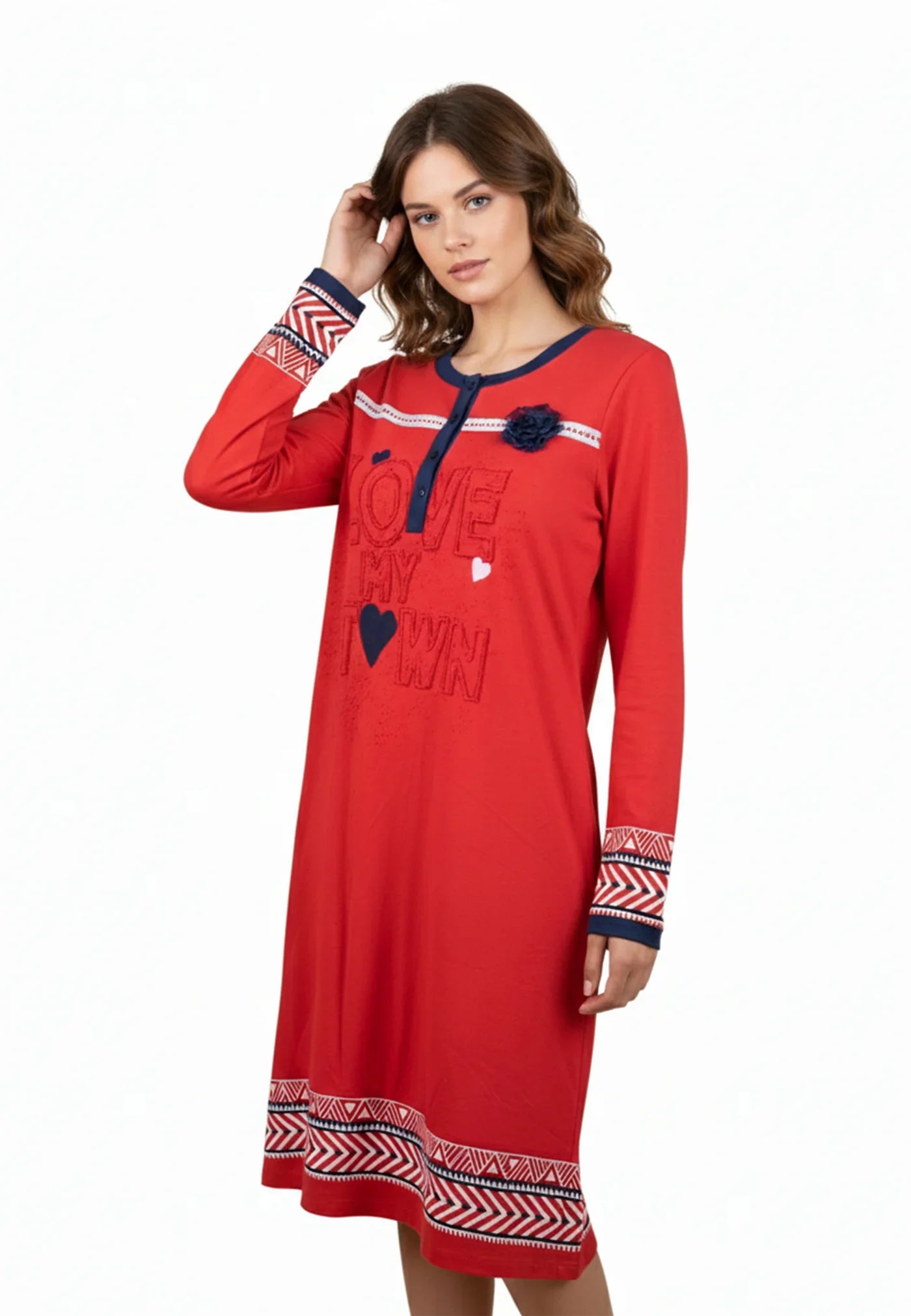 Pyjama Robe Rouge à Motifs