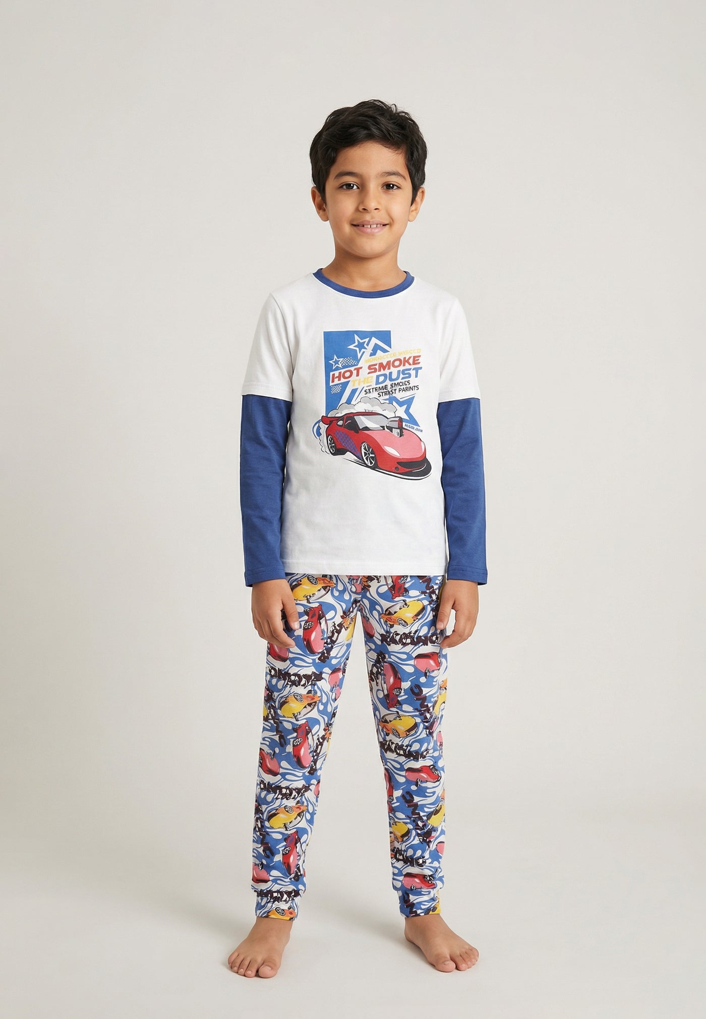Pyjama garçon au style racing avec imprimé Hot Smoke et motif voiture sportive. • Ensemble 2 pièces : haut +...
